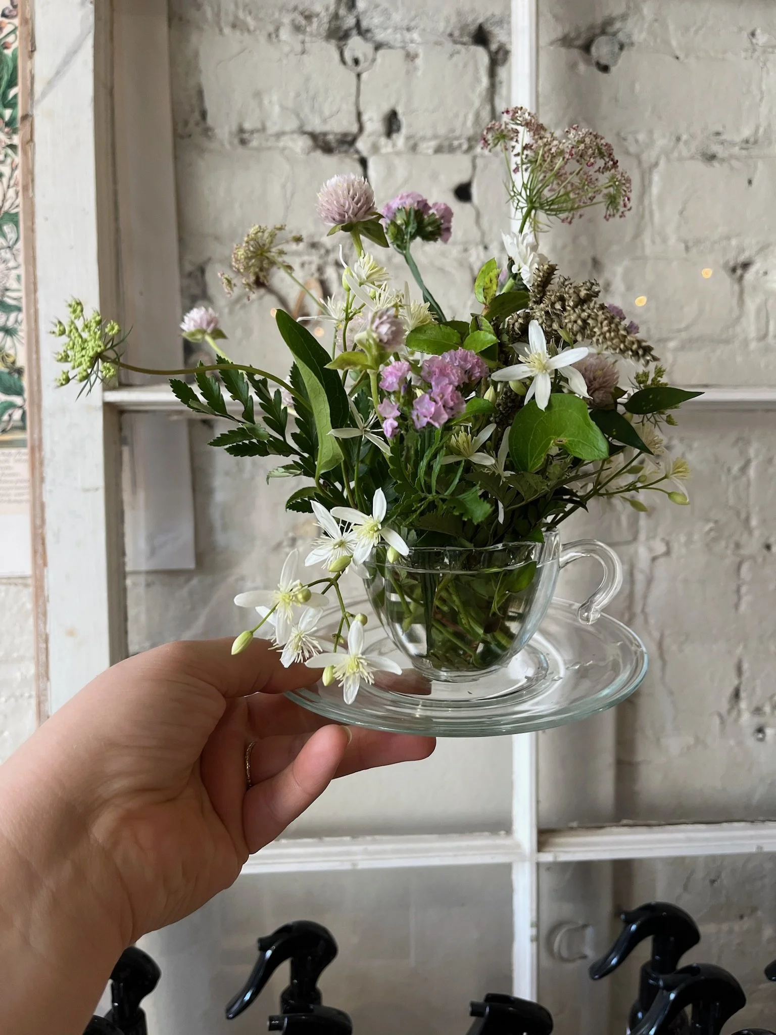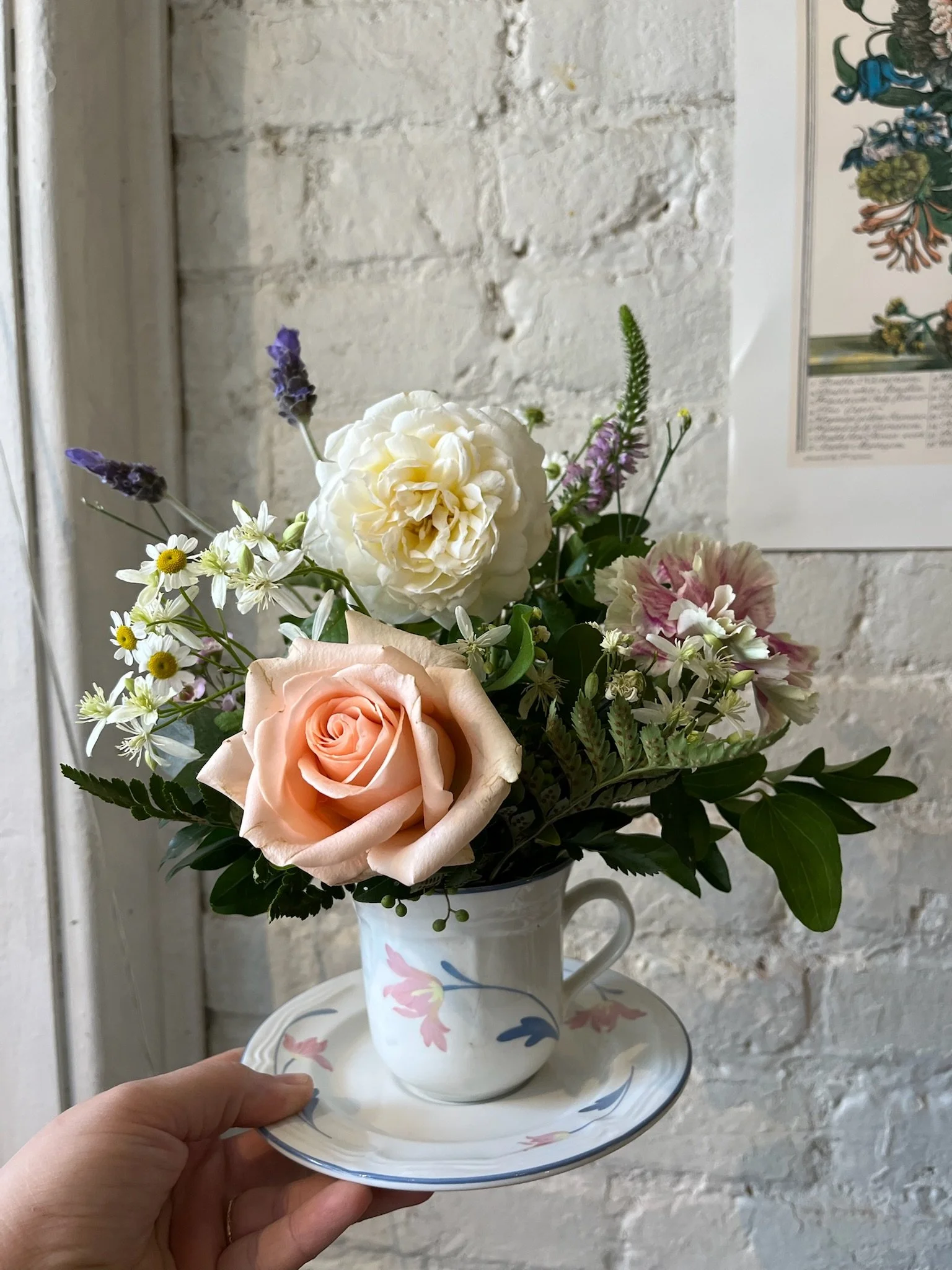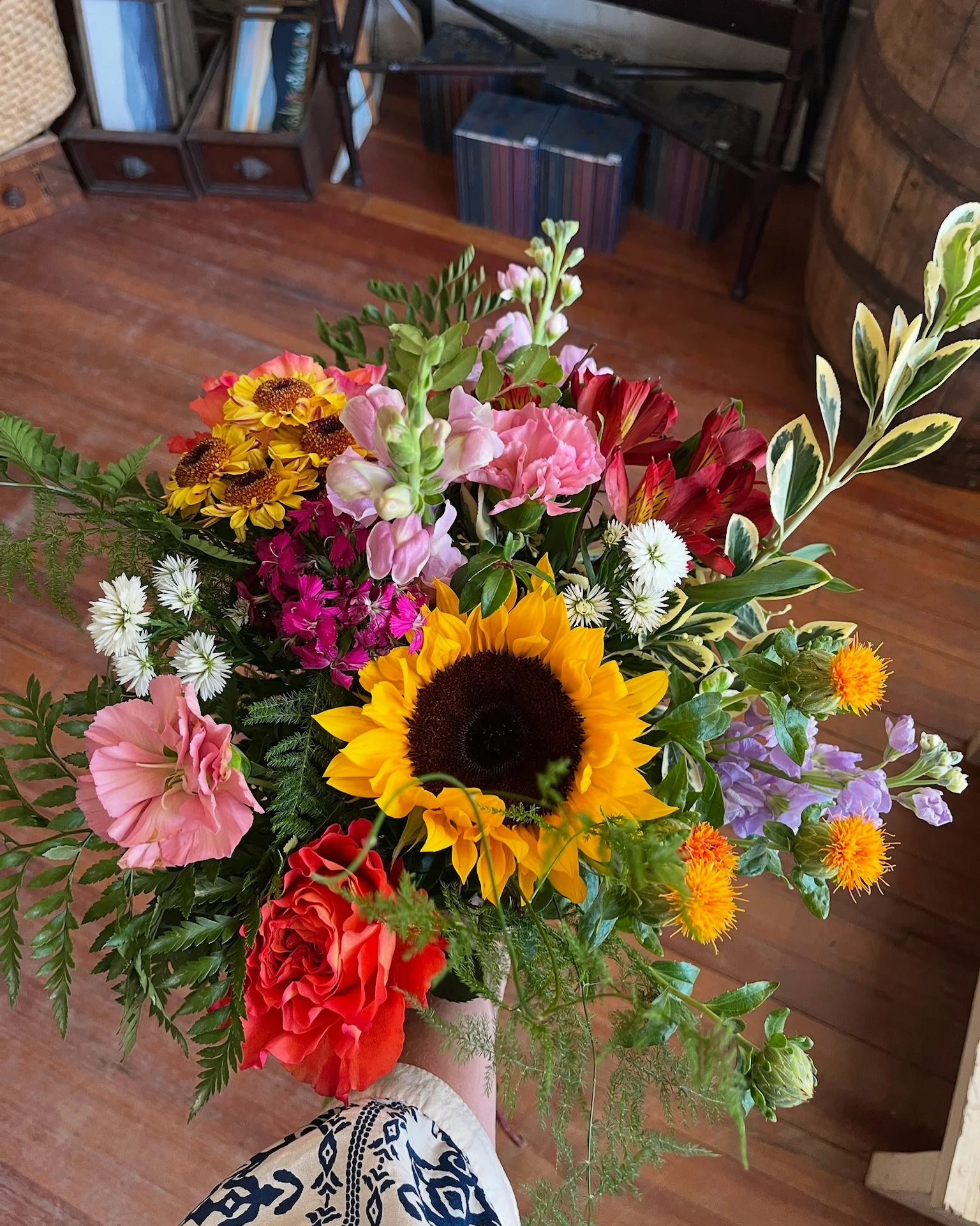 Order Flowers Large Flower Arrangement $100.00 Select Presentation wrapped in brown paper arranged in a vase Add to Cart Added! Medium Flower Arrangement $55.00 Select Presentation arranged in a vase wrapped in brown paper Add to Cart Added! Small Flower Arrangement $25.00 Select Presentation arranged in a vase wrapped in brown paper Add to Cart Added! Flower Crown $65.00 Add to Cart Added! Teacup Arrangement $20.00 Add to Cart Added! Boutonniere $30.00 Add to Cart Added! Corsage $40.00 Add to Cart Added!