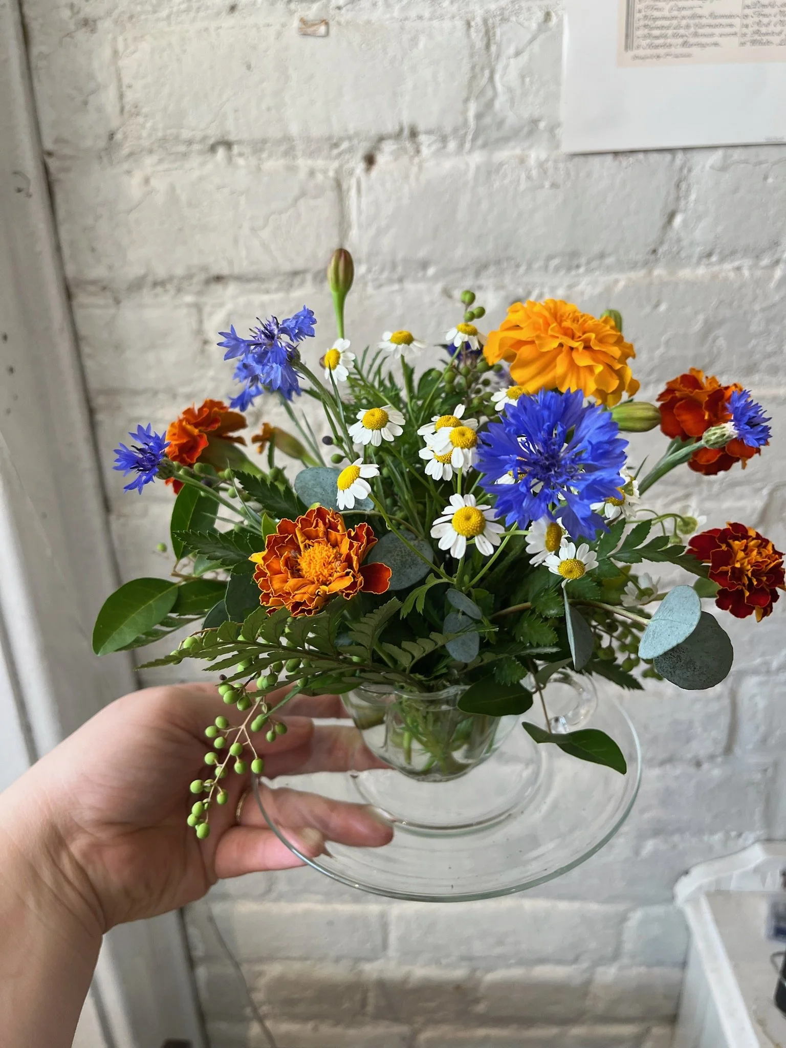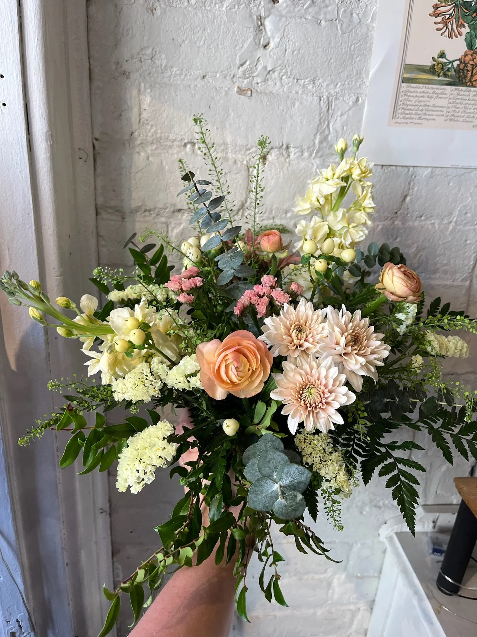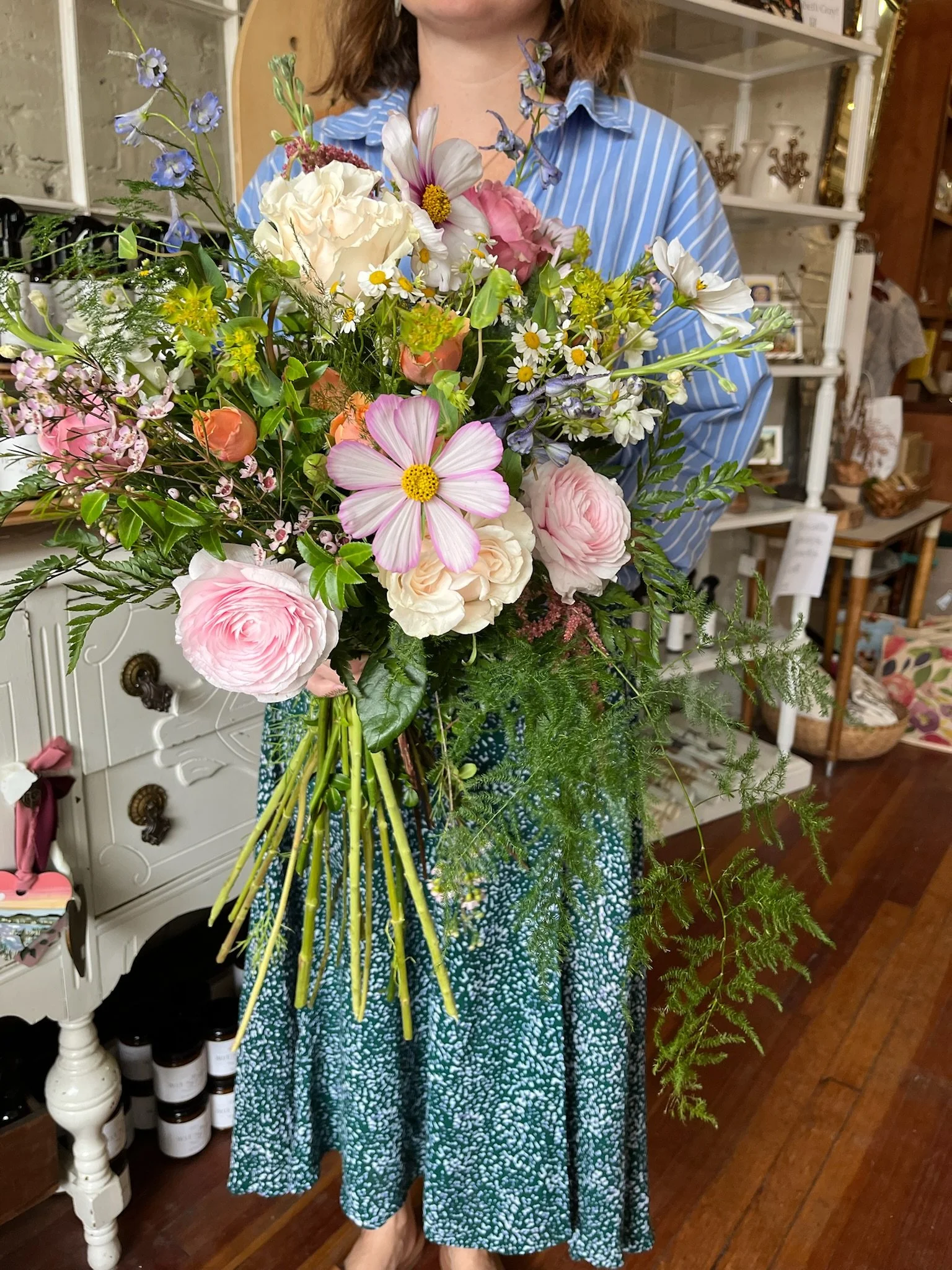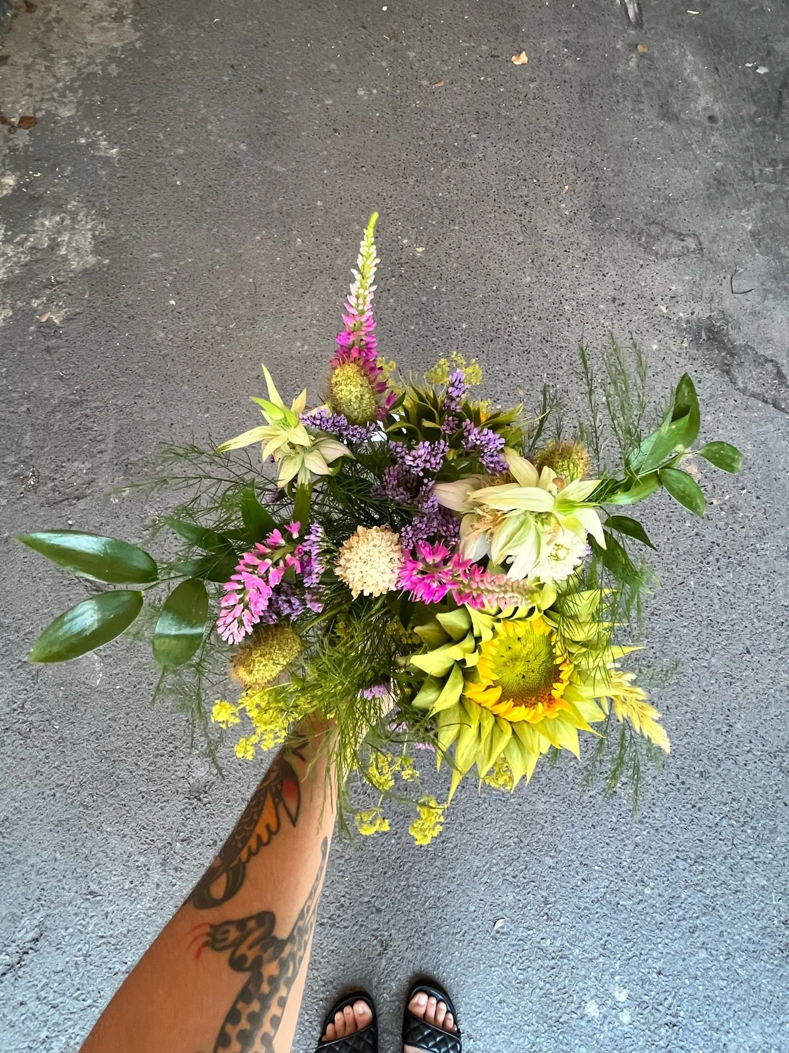 Order Flowers Large Flower Arrangement $100.00 Select Presentation wrapped in brown paper arranged in a vase Add to Cart Added! Medium Flower Arrangement $55.00 Select Presentation arranged in a vase wrapped in brown paper Add to Cart Added! Small Flower Arrangement $25.00 Select Presentation arranged in a vase wrapped in brown paper Add to Cart Added! Flower Crown $65.00 Add to Cart Added! Teacup Arrangement $20.00 Add to Cart Added! Boutonniere $30.00 Add to Cart Added! Corsage $40.00 Add to Cart Added!